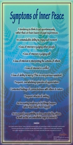 Be on the lookout for symptoms of inner peace. The hearts of a great many already have been exposed; and it is possible that people, everywhere, could come down with it in epidemic proportions. This could pose a serious threat to what, up to now, has been a fairly stable condition of conflict in the world.